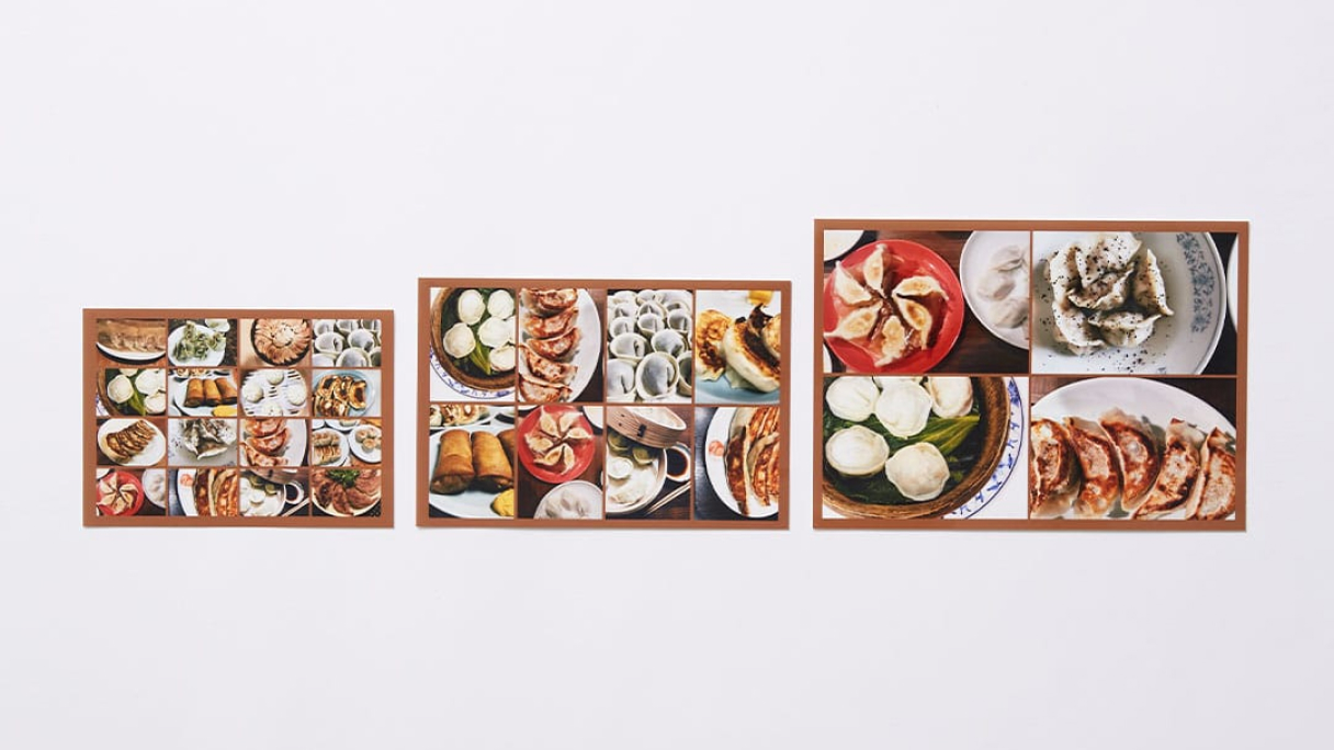 同じ画像でも、違う画像でも、分割数は2分割から16分割まで。レイアウトは13種類。さらに、50種類の背景色や豊富なテンプレートをご用意。好みに合わせて写真を配置できます。