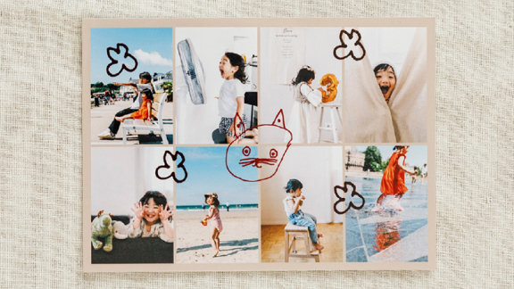 写真を切って貼って アルバムや手帳をおしゃれに。切り離してお友達や家族とシェアもできます。オプションのシール加工をすれば、すぐにアルバムや手帳、色紙に貼ることも◎