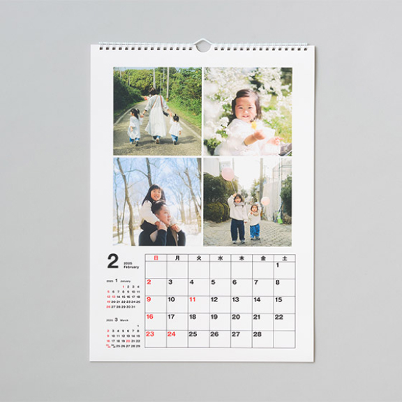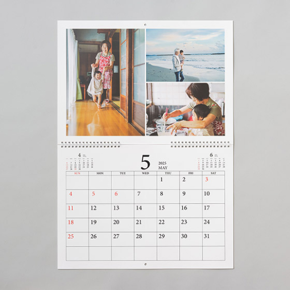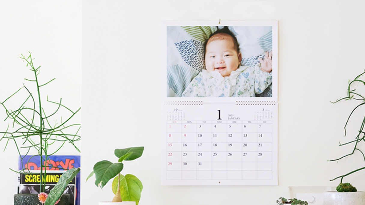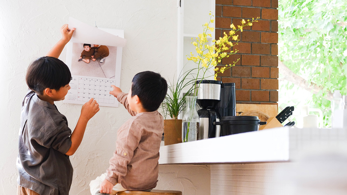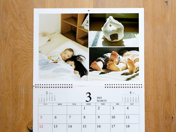 フォトカレンダーではカレンダー機能と同じくらい、写真が大切な主役です。壁掛けカレンダーなら写真を大きく使えるので、子どものかわいらしさや風景の美しさなど被写体の魅力が一層引き立ちます。食事や団らん中に、カレンダーの写真を見ながら家族で思い出を振り返るのも楽しいひととき。家族写真を大きくプリントして飾るのはなんとなく照れくさい方も、カレンダーなら気軽に飾れておすすめです。