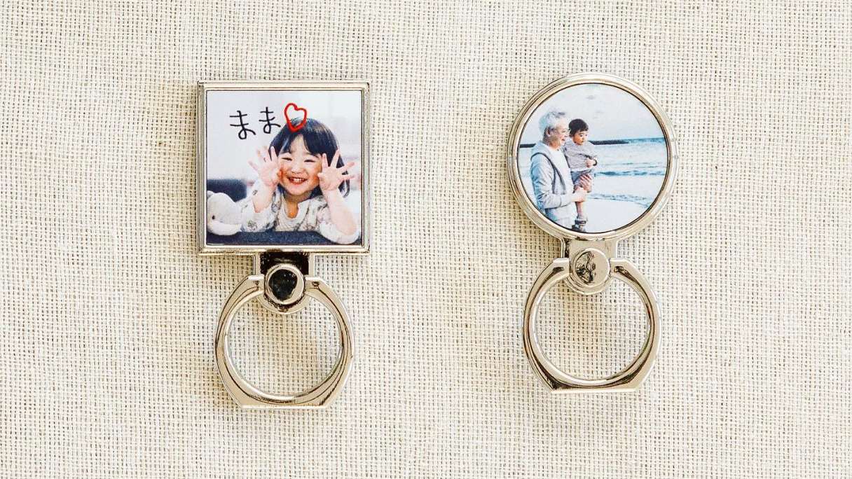 とっておきの写真でつくれるオリジナルスマホリング。ペットやお子さんの写真など、さりげなくお気に入りの写真を持ち歩きたい方におすすめです。