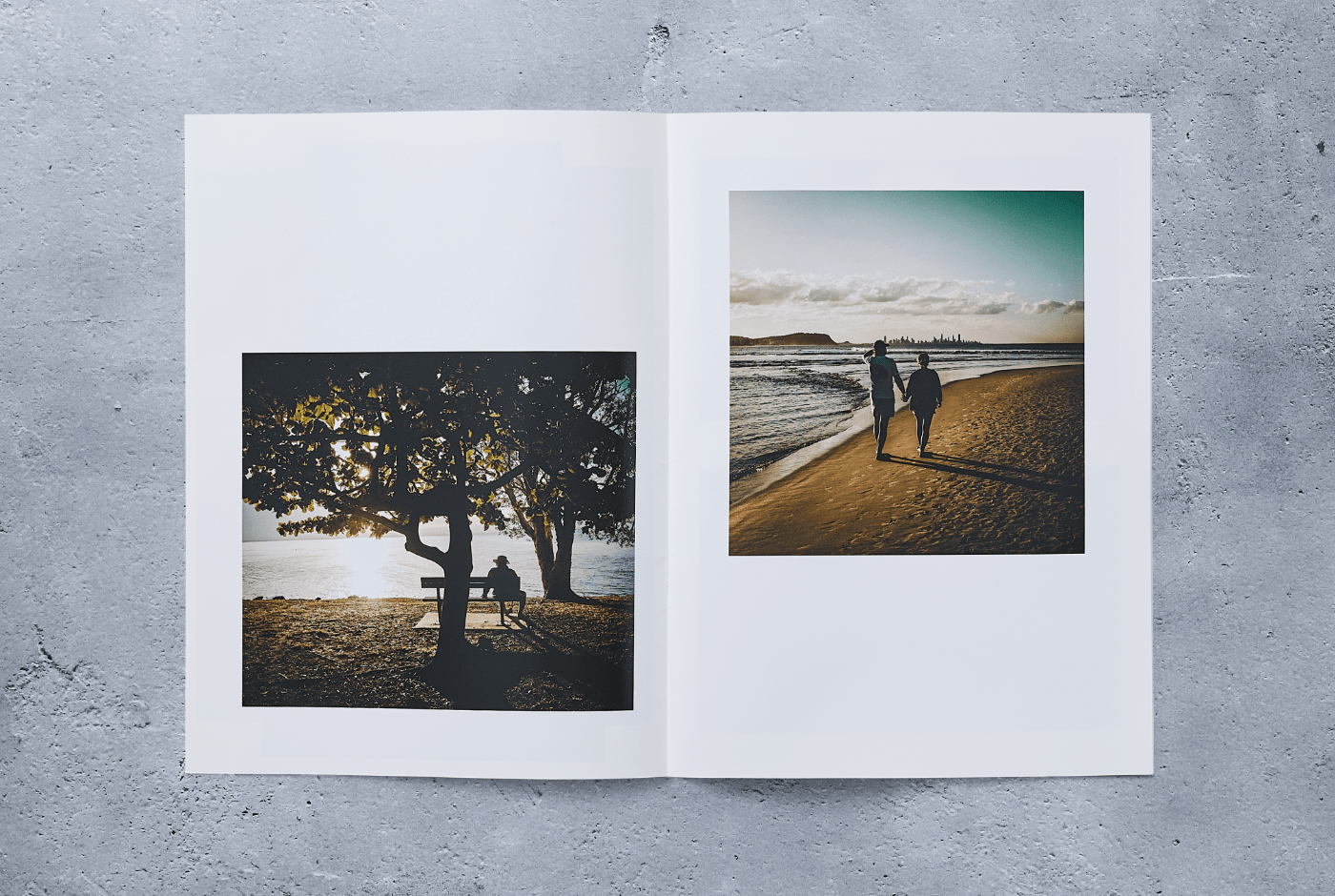 写真の魅力を引き立てるダイナミックなレイアウトが可能な特寸A4サイズ。フチなしや1枚の写真を見開きで展開するなど、見せたくなる作品に仕上げます。