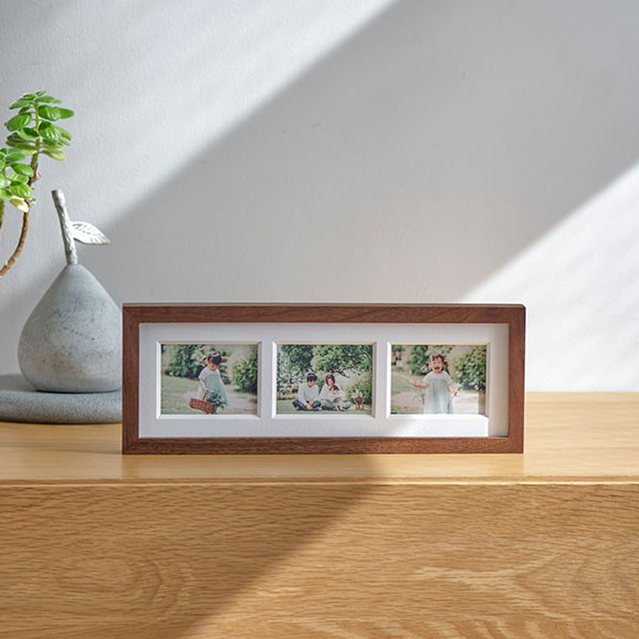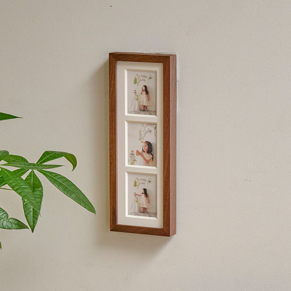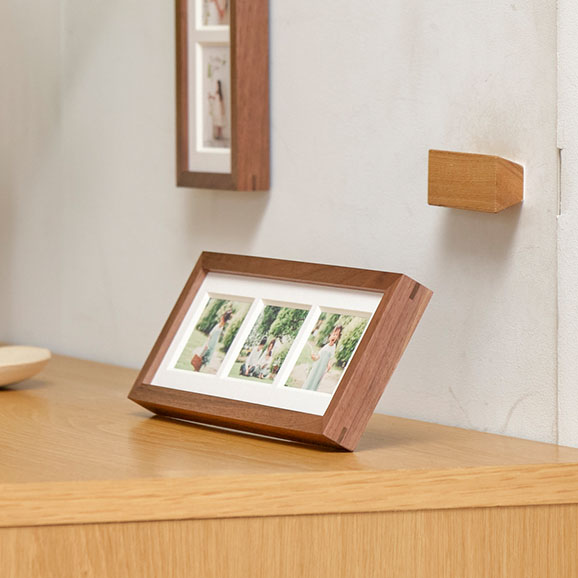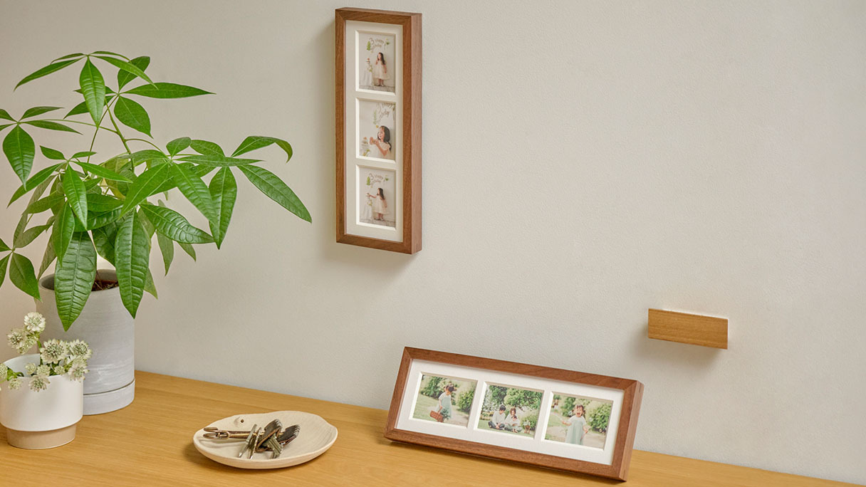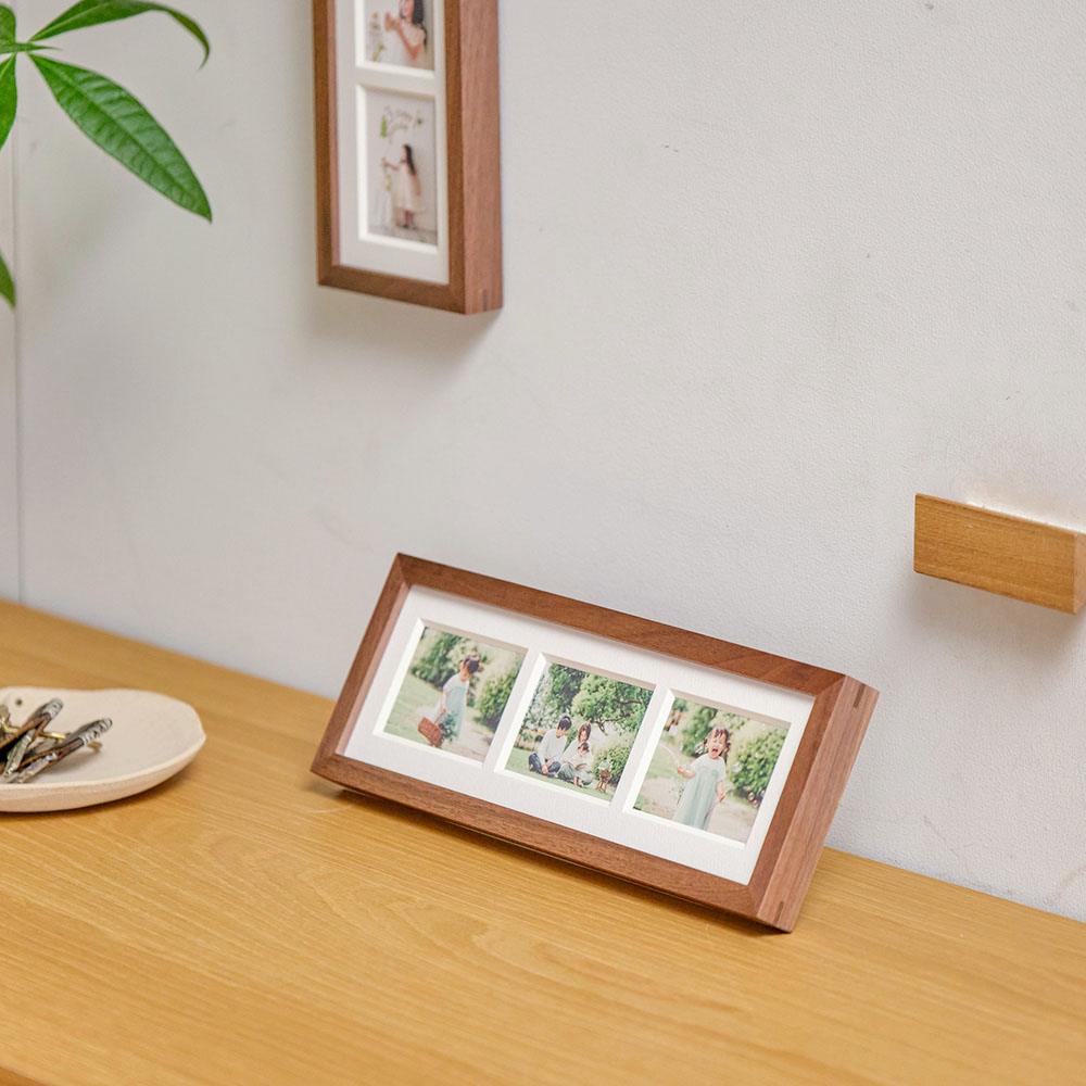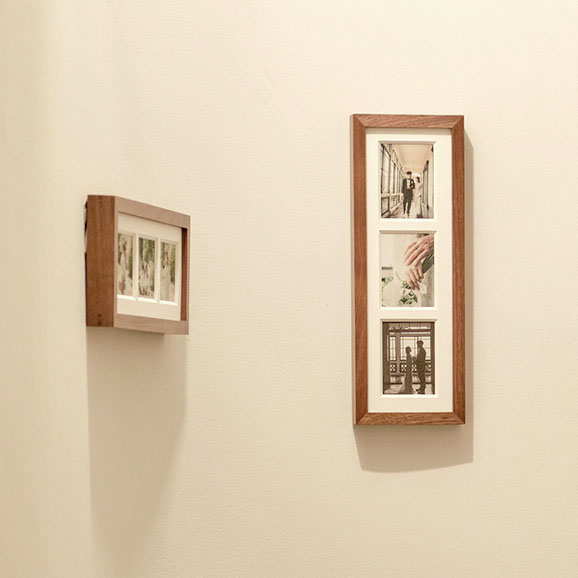 frame #003なら1つのフレームに3枚の写真をまとめることができます。縦横両方で表現できるため、飾りたい空間や写真にマッチした表現を実現します。