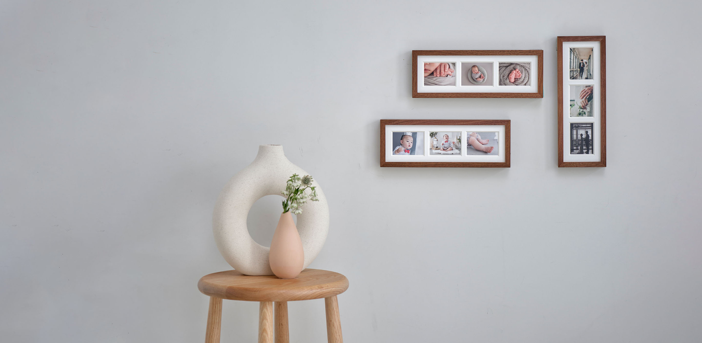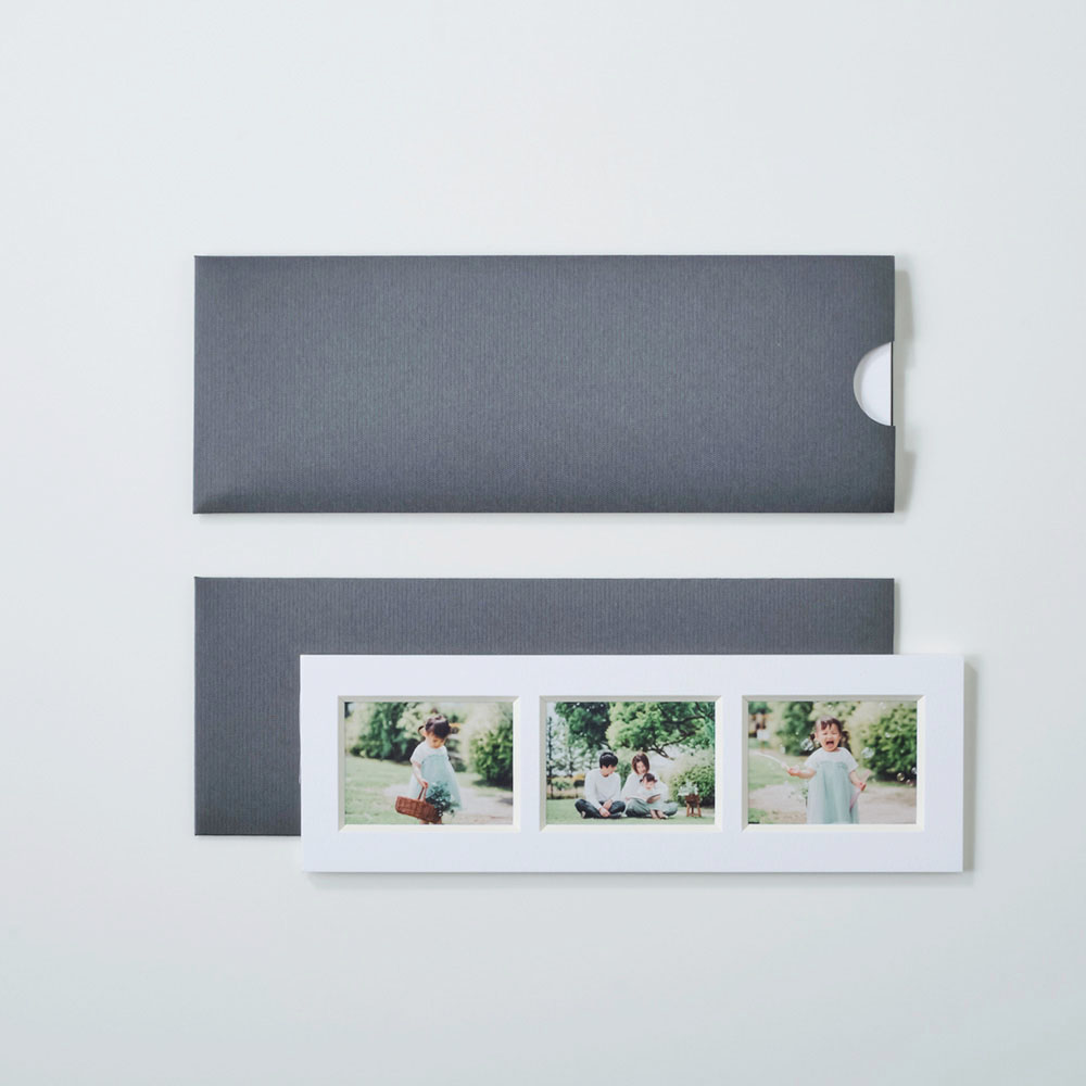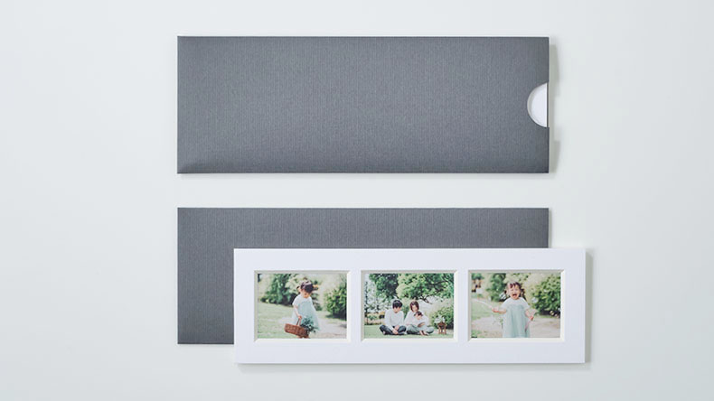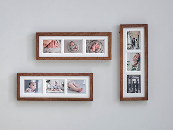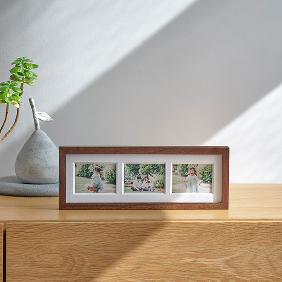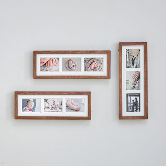 frame #003なら1つのフレームに3枚の写真をまとめることができます。縦横両方で表現できるため、飾りたい空間や写真にマッチした表現を実現します。