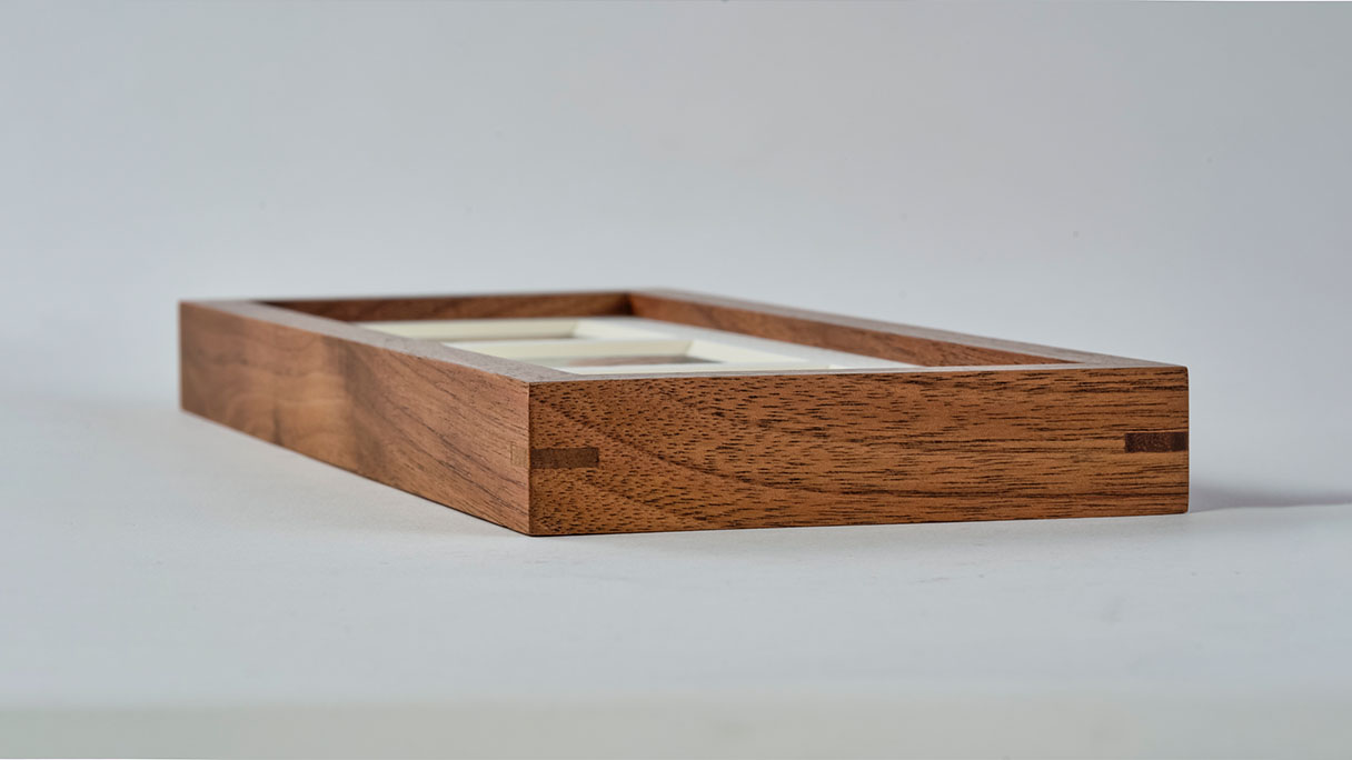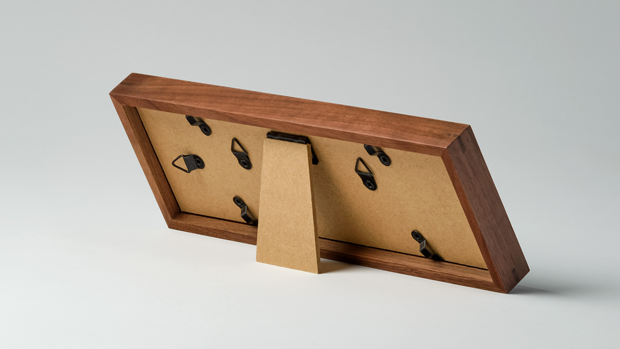上質な天然木「ウォールナット」を使い、厚みのあるデザインとマットな塗装で仕上げた、高級感あふれるフレームです。