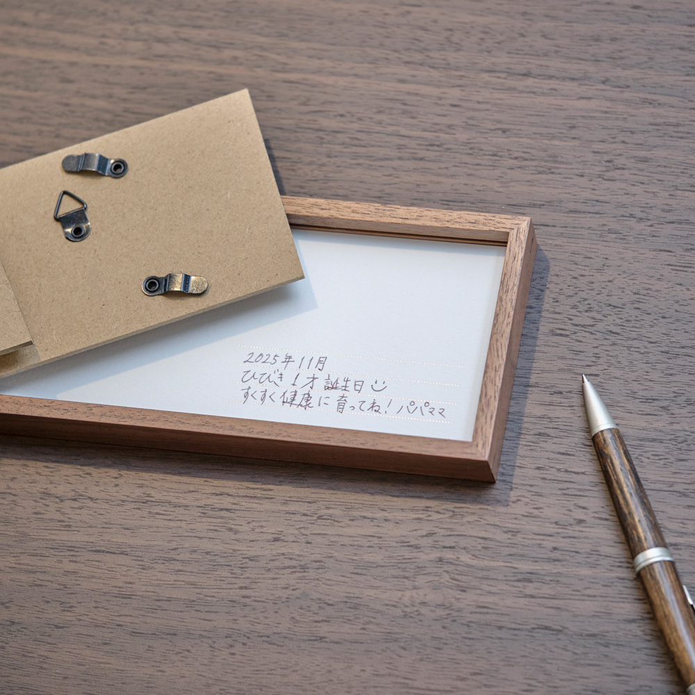 ヨコタイプはフレームに厚みがあるので、そのまま置いて飾ることができます。
