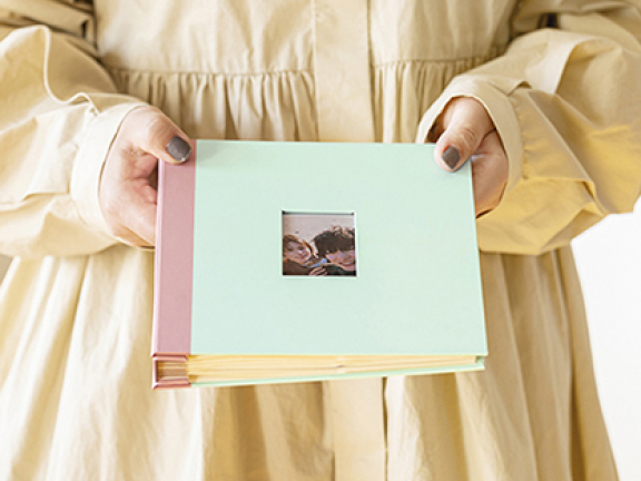 「ハーフサイズプリント」や「チェキプリント(mini/SQUAREフォーマット対応)」を収納できるポケット式のアルバムです。表紙にはプリントが入れられるので、そのまま飾れます。