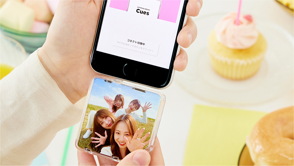 すぐに埋もれてしまうカメラロールでも、いつの間にか見なくなる、オンラインのアルバムでもない。これは、カタチも重みもある、あたらしい思い出の形。持ち歩いたり、飾ったり、おそろいのCuesをもつ、大切な友達とやりとりをしたり。いつでも、どこでも、スマホにコネクトして、ひらけ、あの日。