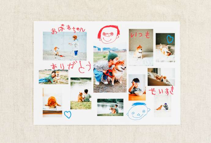 こどもが描いた似顔絵やお⼿紙をそのままフォトグッズにするのもおすすめです。より思いが伝わる、世界にひとつだけのプレゼントをつくりませんか?