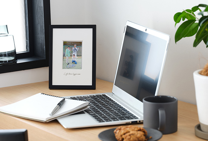 お孫さんの写真やかけがえのない思い出を特別なインテリアにして贈ってみませんか。写真を引き⽴てるシンプルなデザインで、どんなお部屋にも馴染みます。