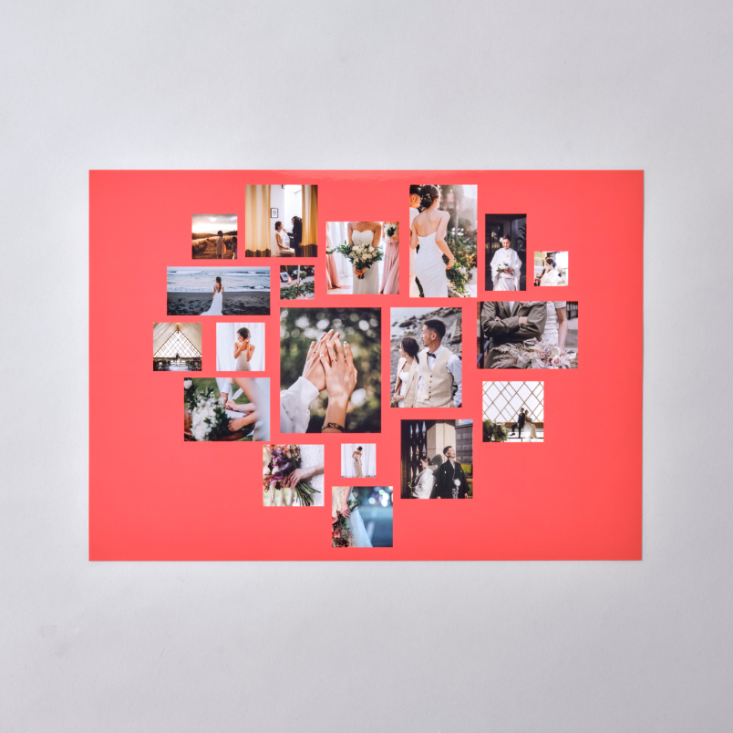 たくさんのお気に入りの写真をまとめて思い出がつまった1枚に。スタンプやメッセージを添えれば、誕生日や結婚、特別な日のプレゼントにも。