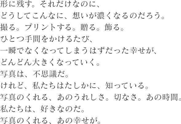 日々に寄り添うフォトフレームやカレンダーを通して、写真で暮らしを彩るきっかけをお届けする企画展。