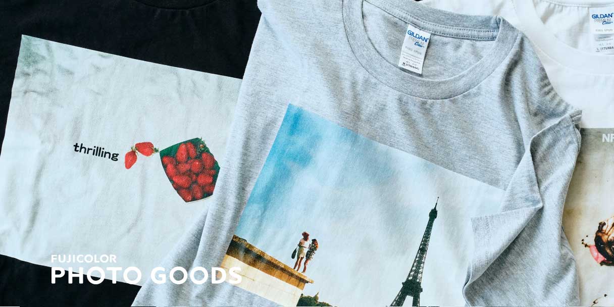 本ワークショップでは、FUJIFILM プリント&ギフト商品「写真プリントで作るオリジナルTシャツ」を制作します。商品の詳細・カラー・サイズ等は商品情報ページをご覧ください。